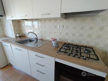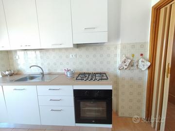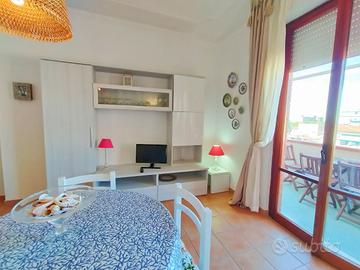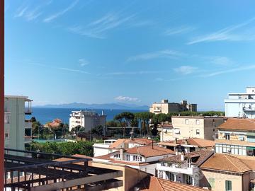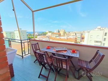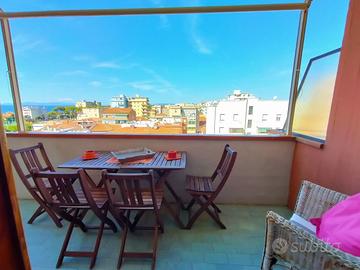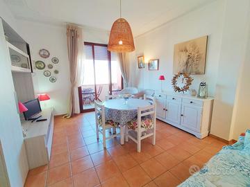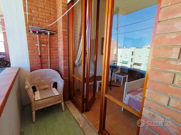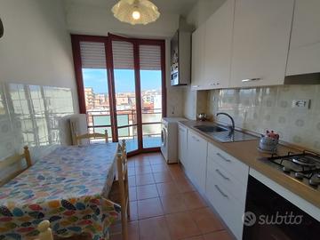 Si propone in affitto per i mesi estivi un grazioso trilocale in ottima posizione in zona Nuova. Immobile a circa 150 metri dalla spiaggia è composto da ingresso, ampio soggiorno con divano letto, terrazza abitabile con tenda e favolosa vista mare, camera matrimoniale con accesso al terrazzo, cucina nuova e bagno con doccia .Lavatrice, lavastoviglie, climatizzato nel soggiorno. L'appartamento si trova al 5 piano con ascensore. Posti letto 2+2.