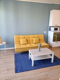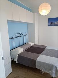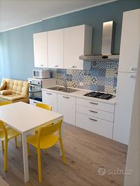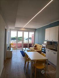 Zona Nuova, appartamento posto al 5 piano di un palazzo dotato di doppi ascensori, completamente ristrutturato. Composto da soggiorno con terrazza panoramica vista mare e divano letto da una piazza, camera matrimoniale con grandi vetrate sulla terrazza, camerina con il balconcino di servizio ad uso lavanderia, bagno con doccia. Tv, lavatrice e lavastoviglie.WI-FI. 4+1 posti letto. Interamente climatizzato, a pochi passi dal mare