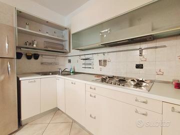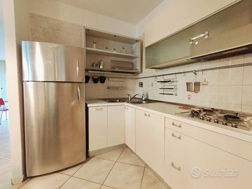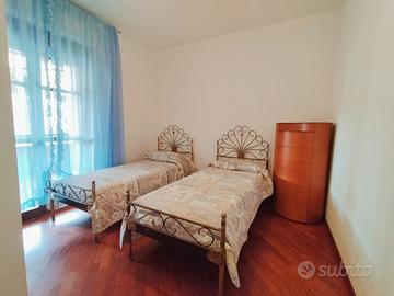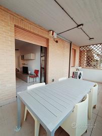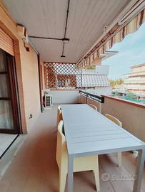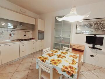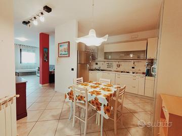 Bellissimo appartamento in zona nuova al 2 piano con ascensore, composto da spazioso soggiorno con divano letto e lettino singolo e terrazza abitabile , cucina abitabile con secondo terrazzo con lavatrice , camera matrimoniale con la cabina armadio e bagno finestrato con la vasca, camerina con due lettini singoli e ulteriore bagno con doccia . Completamente climatizzato, dotato di lavastoviglie e microonde. Posti letto 4+3
