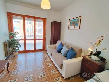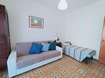 Affittasi mesi estivi. Appartamento a 100 metri dal mare con terrazza abitabile dotata di tenda, al 2 piano con ascensore. Cucina abitabile, camera matrimoniale, camerina con 1 lettino singolo , ulteriore camera/soggiorno con il divano letto e ulteriore lettino singolo, bagno con la vasca e secondo bagno con doccia e lavandino, no water . Tutte le camere con uscita sul terrazzo. Posti letto 4 +2