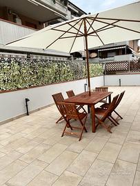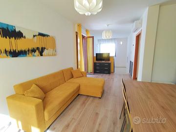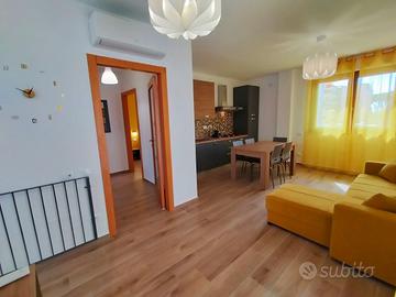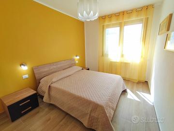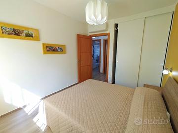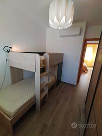 Affittasi bellissimo appartamento completamente ristrutturato con materiali di ottima qualità e rifiniture di pregio. Composto da spazioso ingresso indipendente al piano terra, ideale come appoggio passeggini ecc., dal quale con una comoda scala si accede al primo piano dove troviamo ampio soggiorno con divano letto da una piazza e angolo cottura. Bellissima terrazza abitabile attrezzata per mangiare fuori di circa 100 mq, camera matrimoniale con il guardaroba, camerina con letto a castello e bagno finestrato con doccia.
