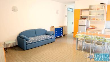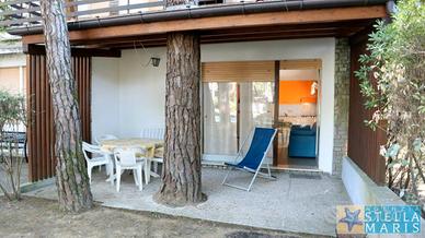 Villaggio Duna Romantica - Lignano Riviera - Curato residence con piscina, immerso in un parco di pineta naturale, a circa 1 km dalla spiaggia. L'appartamento si trova al piano terra ed è composto da: soggiorno-pranzo con divano letto e angolo cottura, una camera matrimoniale, un bagno con doccia, patio esterno attrezzato. TV, lavatrice, aria condizionata, posto auto coperto. Alloggio per 4 persone, adatto a famiglie con bambini. Disponibile con unico contratto dal 1 maggio al 31 luglio. Per informazioni e visite: Agenzia Stella Maris - info@stellamaris.it