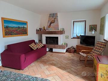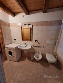 TRILOCALE 4/6 PERSONE: L'appartamento è disposto su due piani; al piano terra si trova un ampio soggiorno con caminetto, divano letto doppio e angolo cottura. Una scala porta al piano superiore, dove c'è una camera matrimoniale, il bagno con doccia e il soppalco con due letti singoli. Ampio terrazzo ammobiliato.