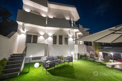 La villa è sede di un bed and breakfast. Suite con bagno privato dotati di tutti i confort e rifiniti con materiali di pregio, climatizzate con impianto a Fan Coil , tetto in cartongesso con faretti LED, letto matrimoniale queen size, scrivania con frigobar, SMART TV 43', doccia o vasca idromassaggio.