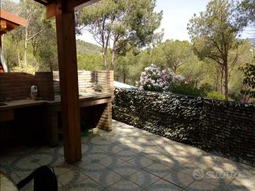 La casa si trova a Pinus Village in mezzo alla pineta a circa 400 mt dal mare, 6 posti letto (4+2) con sviluppo esclusivamente al piano terra è internamente composto da : un ampio soggiorno con cucina a vista, divano letto composto da due letti singoli all'occorrenza affiancabili, il soggiorno dove si trova il divano letto si può chiudere grazie ad una parete a soffietto diventando così un'altra camera da letto indipendente, abbiamo poi 2 camere da letto, una matrimoniale e una con due letti singoli, anch'essi all'occorrenza affiancabili in modo da crearne uno matrimoniale ,in totale 6 posti letto, più DUE BAGNI con doccia. Esternamente troviamo un grazioso giardino terrazzato con una veranda coperta di 25 mq circa dove è possibile arrostire grazie all'ampio barbecue, e cenare all'esterno, più un altra veranda posteriore. Sempre all'esterno troviamo altre due docce con acqua calda. La casa è dotata di condizionatore, lavatrice , tv satelitare, ferro e asse da stiro , phon , forno a microonde , ampio frigorifero con 3 cassetti freezer freezer, barbecue,riserva idrica ecc.. Pinus Village è un villaggio situato nel tratto di costa che va da Santa Margherita di Pula a Chia, a circa 40 km da Cagliari , che si adagia su un promontorio naturale ricoperto da una vastissima pineta che scende gradatamente verso il mare, le dimensioni e le condizioni della spiaggia di Pinus Village dipendono esclusivamente da venti, onde, correnti e maree e comunque in pochi minuti si possono raggiungere le spiagge di Chia e Tuerredda, così come quelle di S. Margherita e Pula ecc.. Nel raggio di 1,5Km dal villaggio sono presenti dei complessi in cui è possibile trovare tutti i servizi necessari quali bar , market , macelleria , pescheria , edicola , tabacchi ecc. Per qualsiasi informazione 3471351482 Nicola Giorgia 3200146489