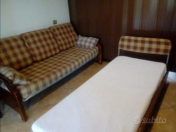 casa a 400 mt dal mare nel villaggio del Pinus Village in mezzo alla pineta con 6 posti letto (4+2) e sviluppo esclusivamente al piano terra è internamente composto da : un ampio soggiorno con cucina a vista, divano letto composto da due letti singoli all'occorrenza affiancabili, il soggiorno dove si trova il divano letto si può chiudere grazie ad una parete a soffietto diventando così un'altra camera da letto indipendente, abbiamo poi 2 camere da letto, una matrimoniale e una con due letti singoli, anch'essi all'occorrenza affiancabili in modo da crearne uno matrimoniale ,in totale 6 posti letto, più DUE BAGNI con doccia. Esternamente troviamo un grazioso giardino terrazzato con una veranda coperta di 30 mq circa dove è possibile arrostire grazie all'ampio barbecue, e cenare all'esterno, più un altra veranda posteriore. Sempre all'esterno troviamo altre due docce con acqua calda. La casa è dotata di condizionatore, lavatrice , tv satelitare, ferro e asse da stiro , phon , forno a microonde , ampio frigorifero con 3 cassetti freezer freezer, barbecue, zanzariere,riserva idrica ecc.. Pinus Village è un villaggio situato nel tratto di costa che va da Santa Margherita di Pula a Chia, a circa 40 km da Cagliari , che si adagia su un promontorio naturale ricoperto da una vastissima pineta che scende gradatamente verso il mare, le dimensioni e le condizioni della spiaggia di Pinus Village dipendono esclusivamente da venti, onde, correnti e maree e comunque in pochi minuti si possono raggiungere le spiagge di Chia e Tuerredda, così come quelle di S. Margherita e Pula ecc.. Nel raggio di 1,8 Km dal villaggio sono presenti dei complessi in cui è possibile trovare tutti i servizi necessari quali bar , market , macelleria , pescheria , edicola , tabacchi ecc. Per qualsiasi informazione 3471351482 Nicola 3200146489 Giorgia