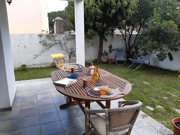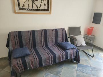 Luminoso e comodo bilocale, composto da 1 camera matrimoniale climatizzata, 1 bagno con doccia, un soggiorno con angolo cottura e divano letto matrimoniale, veranda arredata sul giardino. La casa si trova vicina alla spiaggia di Sa Petra Ruja, tra le marine di La Caletta e Santa Lucia di Siniscola