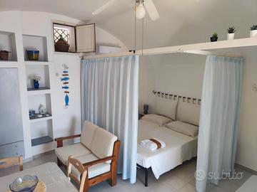 A Marina Serra di Tricase a pochi passi dal mare e dalla famosa piscina naturale, casa vacanza 2/3 posti letto attrezzato con angolo cottura, aria climatizzata, bagno completo di tutti i servizi e veranda esclusiva Possibile utilizzo di terrazzo, seconda doccia esterna e lavatrice in lavanderia di pertinenza. Altre foto e info su richiesta