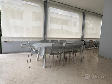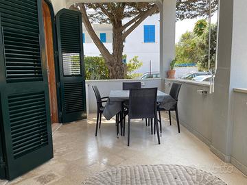 A San Foca, marina di Melendugno, a soli 200m dal mare 5 VELE E BANDIERA BLU, trilocale con bilocale attiguo, indipendenti entrambi per ingresso e aree esterne, con giardino ingresso, ampia veranda attrezzata per pranzare all'aperto, due bagni, ampia cucina. Giardini con arredi da esterno, bbcue, doccia anche esterna per il rientro dal mare. Presenti tutti gli elettrodomestici, aria condizionata.