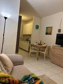 Questo confortevole appartamento ubicato al piano primo è completamente indipendente. Dopo il cancelletto di entrata, un piccolo spazio esterno dove si può mettere la propria auto, del tutto indipendente. Due rampe di scale dove ci si arriva all'alloggio composto da una cucina completamente attrezzata, angolo cottura, frigorifero e pensili. Comodo divano, tavolo e sedie. Subito dopo la cucina, disimpegno con condizionatore e poi la prima camera da letto (matrimoniale) e un'ulteriore seconda camera con letti singoli. Bagno con box doccia, wc, bidet e lavabo. Inoltre a rendere più confortevole la vacanza un balcone con un tavolino e delle sedia richiudibili per allietare le serate estive salentine.