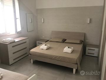 Villa totalmente ristrutturata con finiture di pregio a circa 200m dal mare, zona tra Lido Rio de Mar e Hotel dei Bizantini, composta da 3 camere da letto, ciascuna con letto matrimoniale e letto singolo (tot. 9 posti), ampia cucina, n. 2 bagni, corridoio, doppia veranda, porticati in legno, n. 2 docce esterne e n. 1 interna, set da giardino (tavolo, sedie e divanetti), acqua potabile AQP, forno a legna, barbecue, 600mq di giardino con posti auto. La villa è corredata di ventilatori a soffitto in ogni camera e n. 2 climatizzatori rispettivamente in cucina e corridoio, impianto TV digitale e satellitare, piano cucina e doppio forno elettrico, ampio frigorifero, scopa elettrica, televisore, lavatrice, ferro da stiro, mobili da giardino, pentole, stoviglie, tovaglie, lenzuola e copri guanciali, set di asciugamani bidet-viso e doccia per ogni occupante (teli mare esclusi).