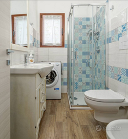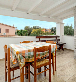 Di nuovissima costruzione appartamento in villa di 3 locali posta al piano superiore ma con giardino e 2 terrazzi. La casa dispone di 4 facciate diverse con vista l'isola di Tavolara. Composto da camera da letto ,con terrazzino, cameretta con 2 letti a castello e di un letto singolo , divano letto con 2 posti, grande in soggiorno con terrazzo . L'appartamento dispone di tutti i comfort, con una cucina attrezzata (lavatrice, lavastoviglie, forno, microonde ecc. Zanzariere in tutte le finestre,il terrazzo dove si può mangiare godendosi le serate estive in serenità. Strada senza uscita e via tranquillissima con 2 posti auto privati . La casa si trova a 1200 metri circa dalla spiaggia la cinta e 1300 metri dal centro di San Teodoro. A 150 metri ci sono disponibili 2 market , bar , tabacchi e pizzerie,farmacia .Volendo non si usa mai la macchina. A 120 metri passa la navetta che vi porta alle spiaggie più conosciute cala Brandinchi, o lu impostu. Il giardino inoltre dispone di un barbeque e di una doccia esterna per non sporcare in casa e farla all'aperto. wifi incluso. Massimo 7 persone. Per colpa di qualcuno non sono ammessi animali .