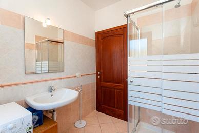 A San Teodoro in località Lu Fraili all'interno del bellissimo e tranquillo Residence Arruli, viene proposto un bellissimo trilocale schiera centrale con giardino fronte e retro. L'appartamento è composto da soggiorno con cucina a vista e divano letto matrimoniale, un bagno mezzo servizio, camera da letto con due letti singoli e bagno con doccia e lavatrice, ampio portico coperto con tavolo e sedie per esterni. Posti letto totali 4+2. La casa è fornita anche di climatizzazione nel soggiorno/cucina e nelle due camere da letto, Tv con tvSat. Parcheggio libero a disposizione della casa, all'interno di un parcheggio recintato e chiuso da cancello; e negli spazi comuni sono presenti due barbecue ad uso libero. Spiaggia di Lu Impostu a soli 1600 metri e il Villaggio di Puntaldia a 2000 metri. A 200 metri di distanza si trovano i servizi principali, supermercato, bar, tabacchi, gastronomia ecc. Fermata autobus ARST a 300 metri. Zona servita dal BeachBus. Servizi opzionali: biancheria a pagamento.