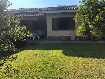 BILO: ampio soggiorno con divano a due letti, TV, cucina a vista, frigo con freezer, camera matrimoniale con ingresso al giardino sul retro, bagno con box doccia e lavatrice, ventilatori, veranda coperta con tavolo e sedie, doccia esterna in muratura con acqua calda, pilozza, giardino indipendente fronte retro e posto auto riservato. Pannelli solari per acqua calda e riserva idrica. Mq 45.