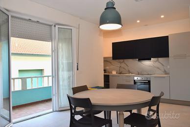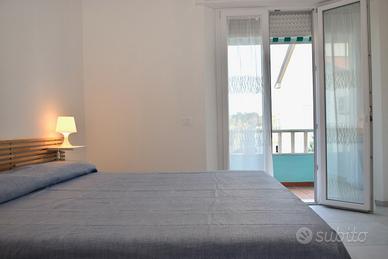 Nuovo appartamento trilocale al piano 2° di palazzina fronte mare, composto da spaziosa zona giorno con angolo cottura, balcone vista mare laterale, due camere matrimoniale con terzo letto entrambe con balcone, bagno con doccia, ripostiglio-cabina armadio; dotato di aria condizionata, lavatrice, fornelli a induzione, frigo con congelatore, tv, un posto auto per auto max mt 4.30 di lunghezza.. Ottima posizione per il centro e i servizi. Questa è una soluzione Pet friendly (un solo cane di piccola-media taglia): cortesemente Vi preghiamo di essere rispettosi degli arredi, di volervi dotare di teli divano se il vostro cane é abituato a salirvi, lasciare pulito il balcone e non arrecare disturbo ai vicini. Check in a partire dalle ore 16.00 e fino alle ore 19.30 Check out ore 09.00