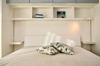 Nuovissimo appartamento bilocale 2 posti, situato al piano primo di piccola palazzina a 250 metri dalla spiaggia. Offre zona giorno con angolo cottura attrezzato, ampio balcone, camera matrimoniale dove é presente anche un divanetto allungabile che può essere adibito a terzo posto letto. Bagno con box doccia. Dotato di aria condizionata, lavastoviglie, lavatrice, tv, fornelli induzione, forno elettrico,Un posto auto privato a disposizione.Distanza dal centro circa 700 metri. Piccolo negozio di alimentari a breve distanza.
