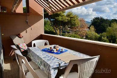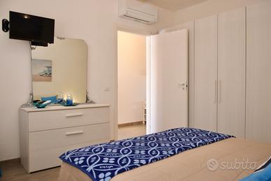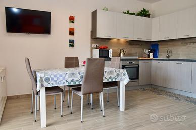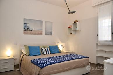 Appartamento bilocale 4 posti, di recente ristrutturazione, situato al piano primo con scala esterna di accesso in tranquilla zona residenziale ma a soli 5 minuti a piedi dalla spiaggia e dalla passeggiata.Offre ampia zona giorno con angolo cottura attrezzato, divano letto due posti, terrazza pranzabile con tenda da sole; camera matrimoniale e bagno con doccia. Dotato di fornelli a gas, frigorifero con congelatore, forno elettrico, microonde, lavatrice,lavastoviglie, macchina caffé a capsule, asciugacapelli, tv, aria condizionata e posto auto privato scoperto. Posizione tranquilla con giardino pubblico e negozi di prima necessità a pochisismi passi dalla sistemazione. Sono ammessi animali di sola piccola e media taglia.