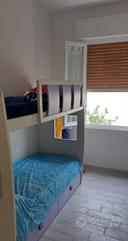Bellissimo Trilocale a San Vincenzo ristrutturato recentemente posto al primo piano di un condominio a MT.500 dal Mare e dal centro del paese. Cucina/Soggiorno abitabile con accesso al balcone in cui troviamo un pilozzo e lavatrice. Ampia camera matrimoniale, cameretta con letto a castello. Aria condizionata in tutte le stanze. Lavatrice, TV 32", macchina del caffè. Su richiesta viene fornito gratuitamente lettino per neonati e prima pappa. Bagno con doccia grande.