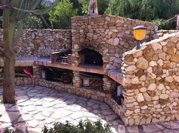 Un'ampia veranda coperta ed attrezzata con angolo cottura barbecue e una