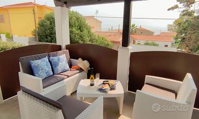Affitto per le vacanze estive accogliente e curato appartamento con terrazza vista mare a soli 50 mt nella bellissima spiaggia nel mare cristallino di Maladroxia, Bandiera Blu 2024 per il settimo anno consecutivo. Grazioso appartamento in villino bifamiliare e situato a pochi passi dalla spiaggia, una splendente località turistica in grado di offrire stabilimenti balneari, ristoranti , pizzerie, chioschi e bar. L'appartamento è costituito da un ampio e luminoso soggiorno con Tv, angolo cottura completamente attrezzato, fornito di ogni comodità , aria condizionata, lavatrice, microonde, macchina del caffè, phone, ferro da stiro ecc. L'appartamento è provvisto da due camere da letto matrimoniali, una camera con letto singolo e due lettini a castello, bagno con doccia. La casa è dotata fino ai 7 posti letto, soluzione ideale per amici o coppie con figli che cercano una casa capiente da condividere in prossimità della spiaggia. Inoltre le finestre sono provviste da zanzariere. Comoda e riservata la casa è dotata di una comoda terrazza panoramica con vista al mare, nella quale è possibile intrattenersi per pranzi e cene all'aperto. La villa situata all'interno di un grandissimo giardino privato con prato verde, è composta da barbecue e comoda doccia esterna.