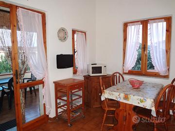 L'appartamento è composto da un luminoso soggiorno-cucina che si apre su una fresca e ampia terrazza attrezzata, un disimpegno con un armadio dispensa, una silenziosa camera matrimoniale, un bagno con doccia. In soggiorno è posizionato un comodo divano letto per due persone.