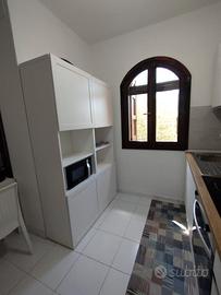 Sardegna, Santa Margherita di Pula (Chia) affittasi bilocale vista mare all'interno del villaggio esclusivo Eden Rock. Soggiorno con divano letto matrimoniale, angolo cottura, camera da letto matrimoniale e bagno finestrato con doccia. Il bilocale è dotato di televisore, aria condizionata, pale a soffitto, lavatrice, doccia esterna, patio con ombrellone, lettini prendisole e posto auto privato.