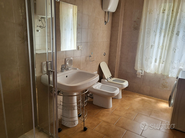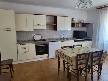 Grazioso appartamento in villa, a 750 metri dal mare, quattro posti letto, soggiorno-cucina, bagno con doccia, veranda arredata, dotato di televisore, lavatrice, barbecue, e riserva idrica.