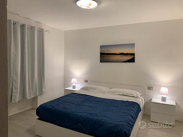 Affitto appartamento 3/4 posti letto con terrazza panoramica sul giardino per mangiare anche fuori .Di nuovo arredo, è composto da soggiorno con parete cottura completa di tutti gli elettrodomestici, anche di forno microonde e macchina caffè elettrica,lavatrice,madia con tv sat 32 pollici, divano letto, retro soggiorno con letto singolo, camera matrimoniale con condizionatore, bagno con sanitari sospesi e box doccia