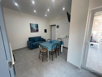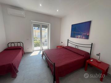 L'appartamento New York si trova al primo piano , é composto da 2 stanze da letto triple ( matrimoniale + singolo) , soggiorno con cucina , e balcone su tutto il perimetro . L'appartamento è interamente climatizzato e dispone di una cucina ad induzione completamente attrezza di stoviglie e pentole .
