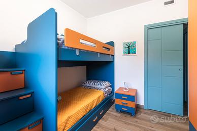 La casa, di nuova costruzione e arredata con stile moderno, è dotata di impianto domotico e servizi di intrattenimento come Netflix e Sky Glass. Si compone di 2 camere da letto (una matrimoniale e una con letto a castello), bagno e cucina-soggiorno, perfetta per rilassarsi dopo una giornata al mare.