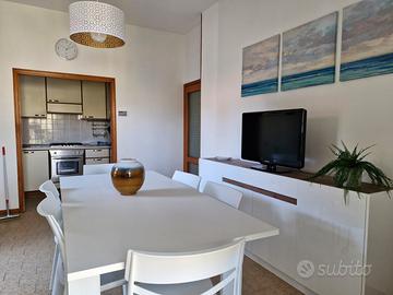 Settembre a Pinarella. A 200 mt dal mare in un contesto tranquillo e al tempo stesso vicino a tutti i servizi. Appartamento da 8 posti letto composto da: sala da pranzo con cucina attrezzata di tutto, 3 camere da letto, due bagni, soggiorno e 2 balconi. Ampi spazi all'esterno e parcheggio privato sempre disponibile. Ideale per famiglie numerose. Disponibile giugno, solo per mese intero.