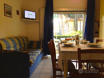 Appartamento ristrutturato, nel centro di Rosolina Mare comodo ai servizi e a soli 5 minuti a piedi dalle spiagge. L'appartamento è composto da cinque posti letto (camera matrimoniale, camera doppia e un posto letto nel divano-letto in zona giorno) ed ha le seguenti dotazioni: TV, microonde, lavatrice, posto bici, posto auto riservato. C'è un grande spazio verde ed una terrazza esterna arredata con tavolo e sedie ideale per mangiare all'aperto.