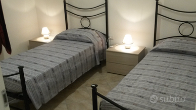 Affittasi a San Pietro in Bevagna, per la stagione estiva 2026, due appartamenti a circa 80 metri dal mare e dalla piazza centrale cittadina, nei pressi del lido "MurMur", in via Fellone 19, con tutti i servizi essenziali a portata di mano (Negozi, Bar, Pizzerie, ristoranti, farmacia ecc.). La casa al piano terra si compone di due camere da letto, cucina, bagno e cortile esterno (dall'8 al 29 agosto non è disponibile)Max 4 persone.