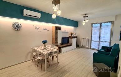 65 mq : soggiorno con CONDIZIONATORE, divano ,TV led 43" , cucina completa di utensili , LAVASTOVIGLIE, forno elettrico.