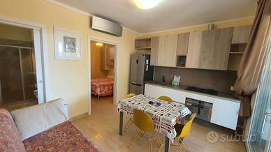 Si compone di una prima stanza con cucina completa, con pianale in Okite, piano cottura a 5 fuochi, ampio frigorifero (capacità 325 lt, sistema no frost, doppia porta: congelatore e frigorifero), divano che può diventare un letto a castello (2 posti letto), tv a led da 43 . Camera matrimoniale con letto matrimoniale, armadio a ponte, zona studio ed un secondo tv a led da 40 pollici.