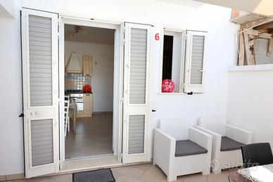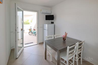 Affittasi bilocali di nuova costruzione da 2 e 4 posti letto, situati in un grazioso residence a circa 70 metri dalle spiagge di Posto Vecchio-Pescoluse, ideali per coppie o famiglie. Sono composti da stanza da pranzo climatizzata con angolo cottura, bagno, camera matrimoniale più letto a castello e giardino riservato. Sono dotati, inoltre, di WI-FI, zanzariere, tv satellitare, barbecue con possibilità di pranzare o cenare fuori, posto auto interno, lavatrice, doccia esterna per consentire agli ospiti un soggiorno più confortevole e rilassante e in dotazione gratuita due biciclette.