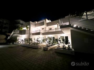 Nuovissimo complesso di appartamenti a Porto Cesareo (zona Scala di Furno) a 400 metri dalle spiagge di Porto Cesareo, dotati di ogni comfort: soggiorno con cucina, lavatrice, camera da letto, bagno, area esterna e parcheggio privato a 150 metri. Disponibili per due, quattro e sei persone.