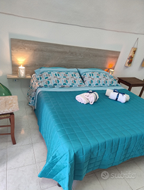 All' interno ambiente unico con angolo cottura bagno con doccia TV clima lavatrice letto matrimoniale.