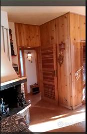 Posizionato in zona centrale con un ampio balcone panoramico nel soggiorno. Arredato in stile di montagna con pareti in legno dotato di camino e posto auto riservato in garage coperto.