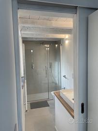 un'atmosfera luminosa e accogliente, con due bagni, due camere e un terrazzo panoramico che regala una vista mozzafiato sul mare e sul maestoso monte