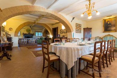 La Casa grande (250mq 8/10 pax) è un appartamento al pian terreno di un casale di campagna con altre case. La casa è composta da un elegante ingresso, una grande cucina abitabile dotata di tutti i comfort (frigorifero, freezer, forno elettrico, lavastoviglie, tostapane, microonde e camino), un grandissimo salone di oltre 75mq con camino, sala da pranzo e studio con un divano letto matrimoniale, bagnetto senza doccia e un sottoscala con lavatrice. La zona notte è invece composta da 2 grandi stanze matrimoniali, una grande stanza doppia, un bagno con vasca e doccia e un altro bagno con doccia. Questa casa è caratterizzata soprattutto dalla presenza di un grande portico esclusivo di oltre 50mq, a cui si accede sia dal salone che dalla cucina, e dove è possibile mangiare accanto al giardino.
