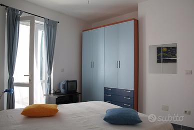 In zona Cala Feola bilocale inserito in plesso al cui ingresso si accede attraversando un ampio cortile chiuso da cancello e attrezzato con tavoli, ombrelloni e barbecue per poter cenare all'aperto in piena tranquillità. Dalla terrazza/solarium facilmente raggiungibile si può godere di una straordinaria vista su Cala Feola e piscine naturali. Tali lidi sono raggiungibili a piedi in pochi minuti.