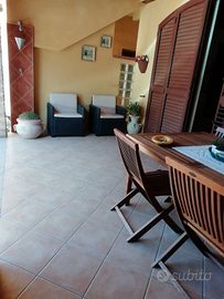 1 camera matrimoniale e una cameretta con 2 letti soggiorno cucina abitabile doppi servizi lavatrice doccia esterna 2 verande barbecue posto auto ventilatore a telecomando aria condizionata giardino tv satellitare microonde macchina per caffè per preventivo elencare il numero delle persone grazie