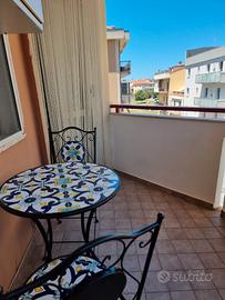 L'appartamento ha un'ampia zona giorno climatizzata e due balconi, cucina accessoriata (lavastoviglie, forno, tutte le stoviglie necessarie, tostapane, macchinetta caffe a capsule ecc...