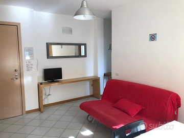 Appartamento centrale per 4/5 persone molto tranquillo, 100 mt dal mare BAGNI MARCHI O BAGNI LUNGOMARE zona centrale, fermata bus e parcheggio sotto casa, ampio soggiorno con angolo cottura, divano letto matrimoniale, poggiolo con in lontananza piccola vista mare, bagno con vasca, camera con letto matrimoniale e singolo completo di aria condizionata e riscaldamento autonomo, TV, lavatrice.