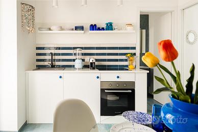 50 mq ben distribuiti: soggiorno luminoso, cucina attrezzata, due camere da letto (matrimoniale + castello) e bagno moderno