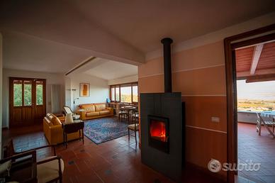 Vista mare sul poggio, si affitta primo piano, totalmente indipendente, di incredibile villa appena rinnovata, dotata di due terrazze vista mare e diaccia botrona e di una terrazza sul retro, due camere matrimoniali, due bagni (uno con doccia e uno con vasca), cucina, sala da pranzo, salotto, lavanderia, giardino e ampio parcheggio auto, moto e bici privato recintato. Climatizzazione e riscaldamento presenti. La casa è rifinita con arredamento di pregio, la cucina è completa di lavastoviglie, forno, microonde, frigo, congelatore e bollitore. Presente wifi ultra veloce (Starlink), adatto a chi deve lavorare. Si fornisce biancheria ed asciugamani.