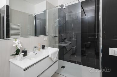 Appartamento completamente ristrutturato e ammobiliato a nuovo, situato al 1° piano con ascensore, condizionato, videocitofono. Dispone di quanto necessario per uso cucina con forno e lavastoviglie, bagno con ampio box doccia e lavatrice. Composto da soggiorno cucina con divano letto, camera matrimoniale, piccola cameretta con letto singolo e armadio. Zona servitissima e a pochi passi dall'isola pedonale e dalla spiaggia.