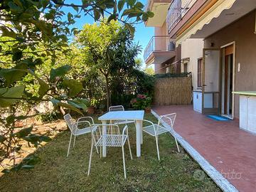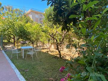 Splendido bilocale, 4 posti letto (+ 1 brandina), con giardino e box, a 800 metri dal mare, composto da ingresso, camera da letto matrimoniale, ampio soggiorno (divano letto) con angolo cottura, bagno e ripostiglio. L'appartamento è completamente arredato, fornito di tutto il necessario per trascorrere una comoda vacanza ed è dotato di WiFi, lavatrice, forno elettrico, ferro da stiro, TV color, aria condizionata e zanzariere. Disponibile fino al 31/05 e dal 12/08 in poi