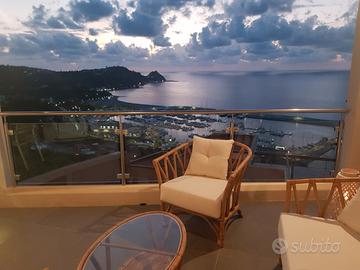 Affittasi per vacanze a Capo d'Orlando, nuovo appartamento arredato sito in Contrada Scafa a pochissimi minuti di auto dal mare. Panoramicissimo, offre una vista impagabile sul mare e sul porto turistico di Capo d'Orlando. L'appartamento si compone di due camere da letto, soggiorno-cucina, bagno e un grande terrazzo nel quale è installata una vasca idromassaggio jacuzzi. Tutti gli ambienti sono climatizzati. È la soluzione ideale per chi desidera abbandonare il caos cittadino e godere della tranquillità, della vista e della natura. Nel contempo la spiaggia dista solo 3 minuti di auto e il centro città circa 10 min.